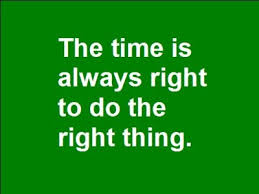 the trial he faced with even greater faithfulness. And through it all he learned perhaps the most valuable lesson: THE TIME IS ALWAYS RIGHT TO DO THE RIGHT THING.